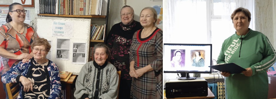 Библиотекарь провела обзор выставки «Женщина в литературе». Прочитанные трогательные отрывки о материнской любви из произведений «Слова о полку Игореве», Н.Гоголя «Тарас Бульба»", поэтические строки известных поэтов Н.Некрасова, Р.Рождественского, С.Есенина, О.Шигиной раскрыли величие матери. Все гостьи получили подарки, сделанные руками детей. Закончился праздничный вечер дружеским чаепитием.